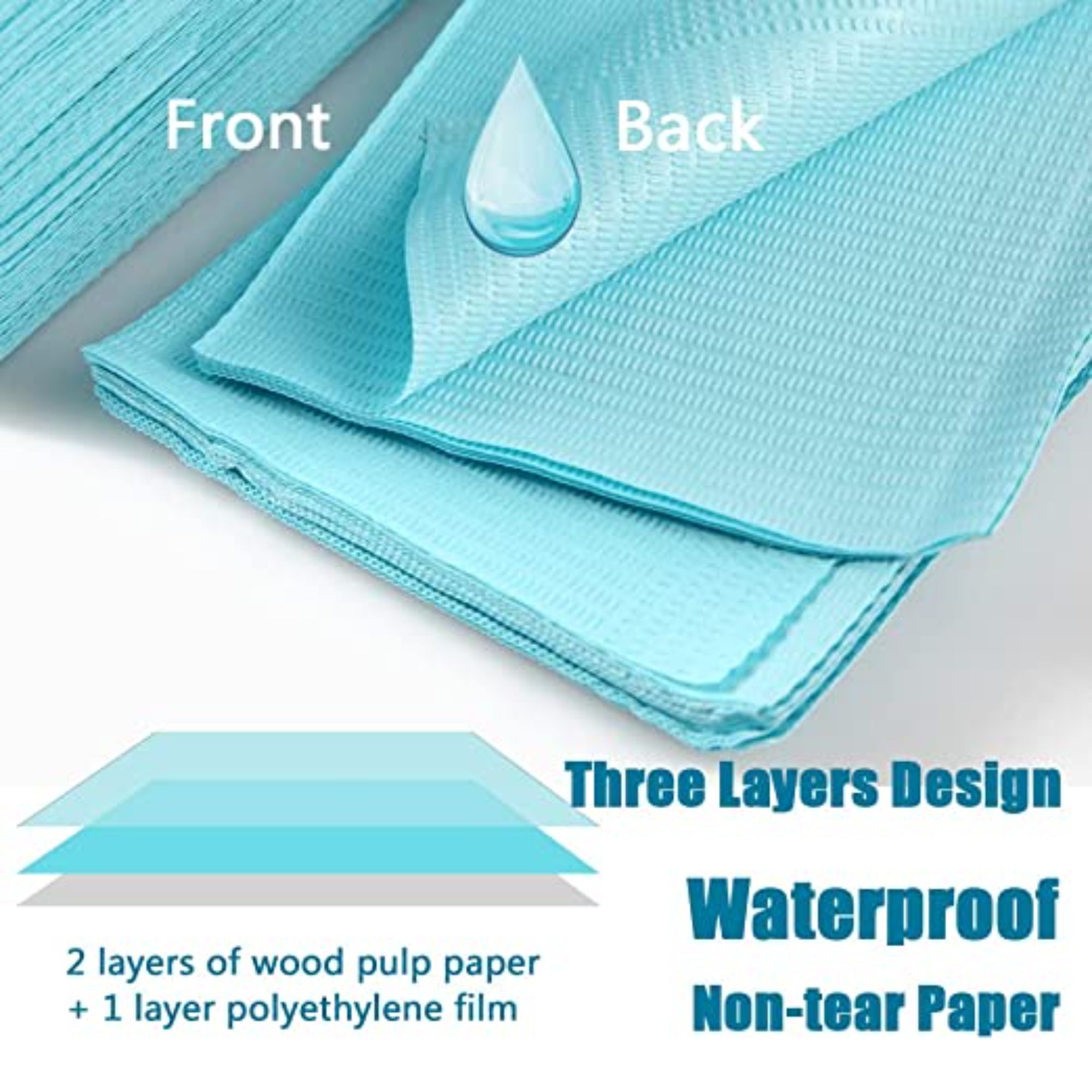 | Anvendelse | Bruges vidt som beskyttende underlag ved tandsygdomsundersøgelser for at forhindre blod og vand, og for at undgå besmittelse af tøj eller arbejdsflader, der kan føre til krydskontamination. |