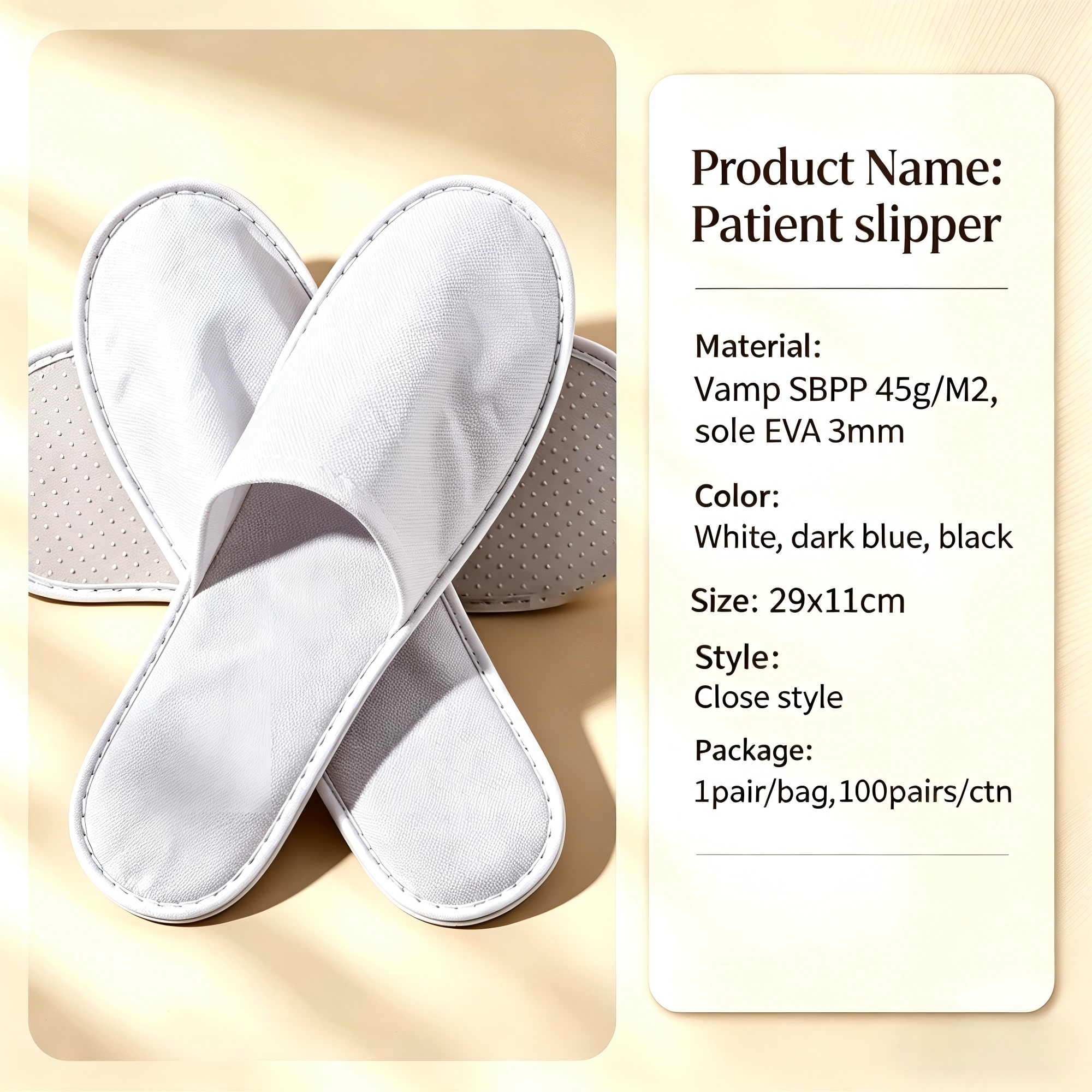 Anti-slip property: The non-woven fabric sole has poor anti-slip performance and is not suitable for smooth surfaces such as tiles and rubber. Hospitals often remind patients to avoid wearing such shoes.