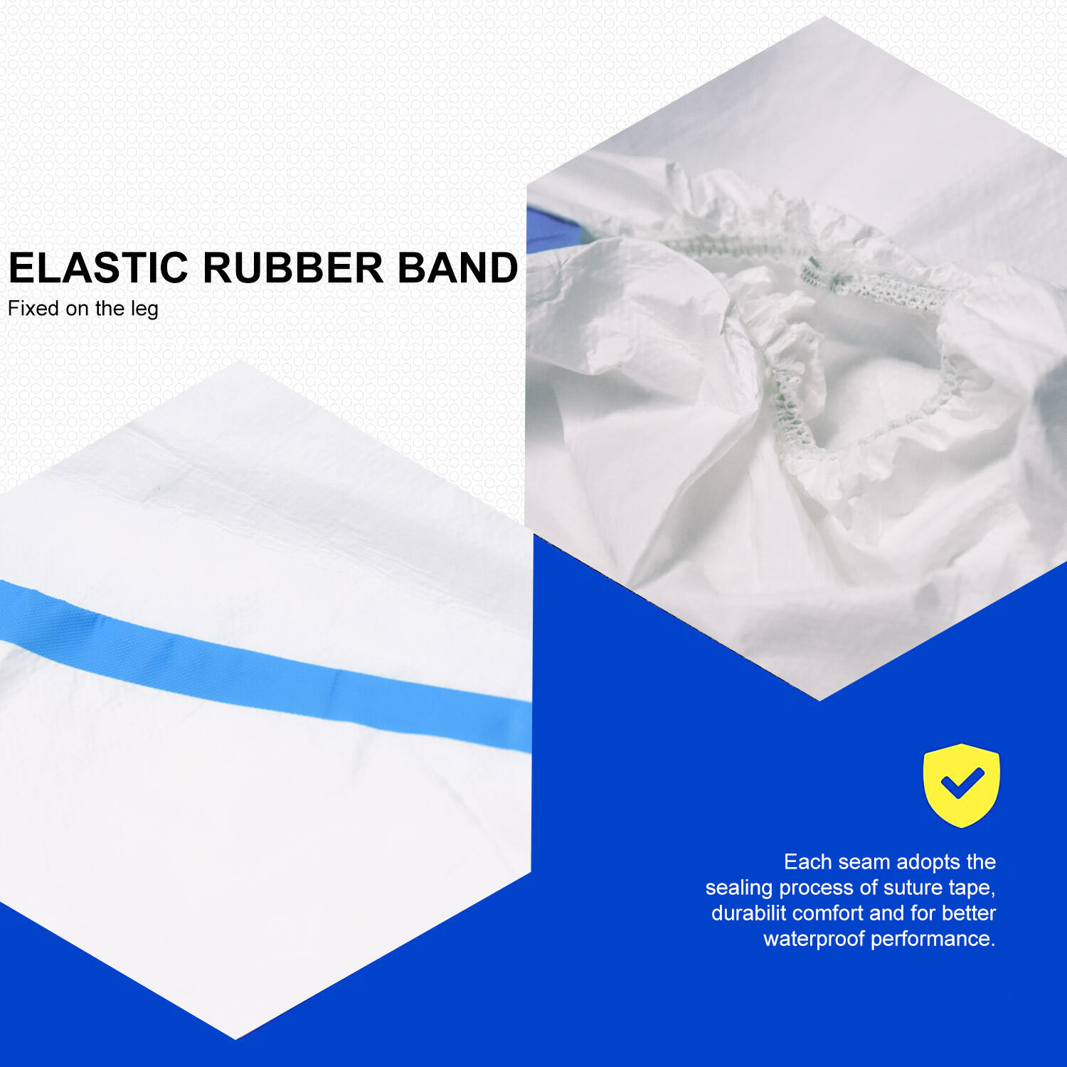 Spec:Microporous film,wihte,55g/M2,40x50cm,with elastic, sewing part with blue tape for full protective.