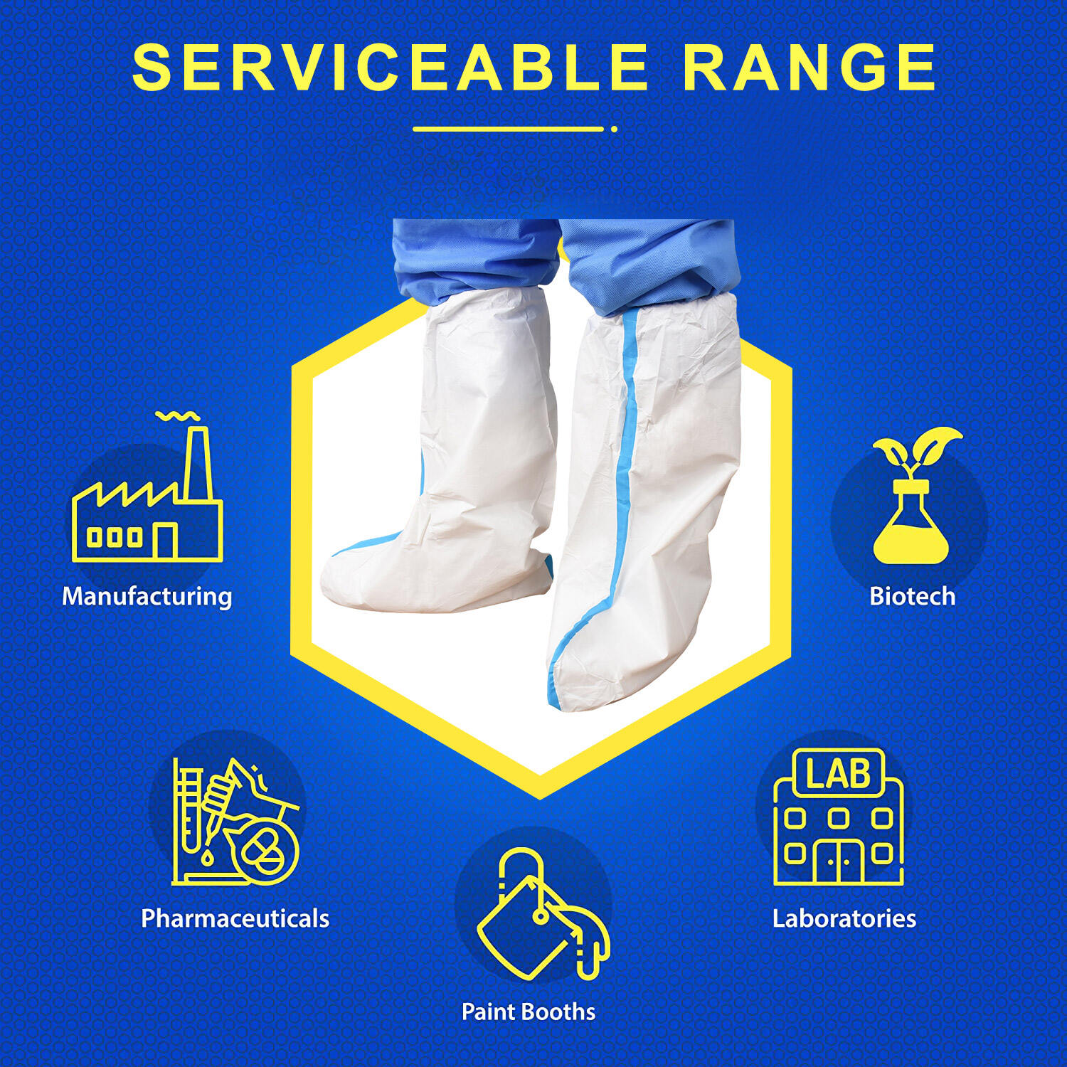 Equipped with elastic bands at both the ankle opening and top edge, these boot covers offer a customizable fit for different foot sizes. The elastic design ensures they stay in place during movement, avoiding slippage or bunching that could impede work efficiency. The lightweight and flexible material also conforms to the shape of shoes and boots, providing a comfortable, unobtrusive fit without restricting mobility.