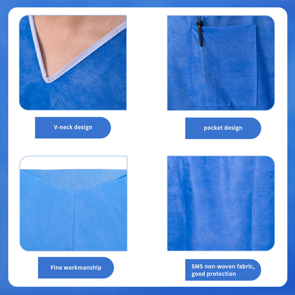 In surgical departments, these gown sets play a crucial role. Before surgery, patients change into disposable non-woven gowns to maintain the sterility of the operating room environment, preventing the transfer of bacteria from their regular clothes to the surgical site. After surgery, during the recovery period in the post-anesthesia care unit (PACU) and back in the ward, the gowns continue to provide a clean and comfortable option. Their soft, breathable material is gentle on post-surgical incisions, reducing irritation and promoting healing.
